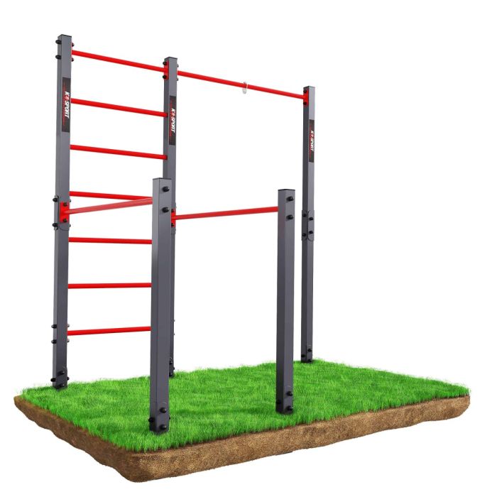 Antrenamentul la barele orizontale, paralele și la cele de perete, în aer liber, se face cu propria greutate corporală. Nu ai nevoie de niciun echipament suplimentar, cum ar fi plăci de greutăți, pentru a obține succesul antrenamentului. La acest suport de gimnastică în aer liber, îți antrenezi întregul corp în aer liber, în condiții naturale.